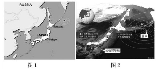 材料一?据美联社报道,美国时间2006年11月15日6点15分日本千岛群岛附近(如图1)发生里氏8.1级强烈地震,并发布海啸警报。日本气象厅同时表示,地震引发的海啸将高达2米,呼吁当地沿岸居民迅速撤离。