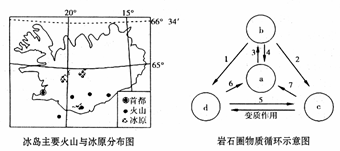 小题1:在岩石圈物质循环示意图中,能代表此次火山活动的地质过程及形成的岩石分别是