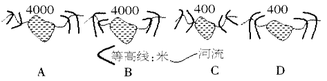 5、单选题  下图是北半球中纬度某地区的地形图,读图回答下列各题。