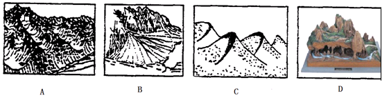 小题2:在下面四幅地貌景观中,M地形区及其附近不常见的地貌景观是(?)
