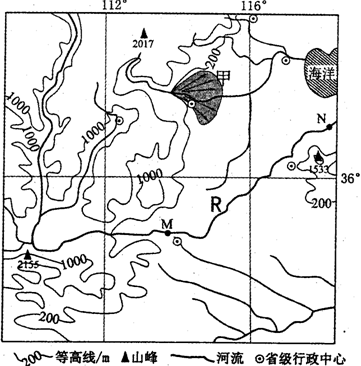 ⑴图示地区的地势特征是 ,R河在图中M点以上河段最主要的环境问题是______________,环境问题形成的自然原因______________________________________________________
