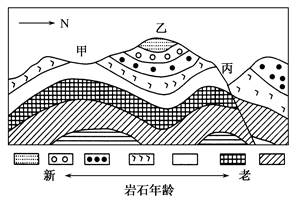 (1)据图说出乙地的地质构造是___ ___,简要说明你判定的依据。(3分)