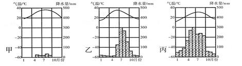 小题1:比尔马、安拉阿巴德、广 州对应的气温和降水量图分别是(?)