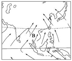 3、综合题 读“亚洲季风图”回答下列问题:(8分)