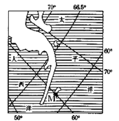 1.图中M地常年盛行的风向是2.若某科考队员于某日北京时间13时30分在M地观测到太阳位于地平线上,当他再次观测到太阳位于地平线上的时间间隔是