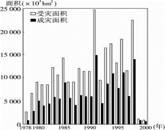 4、单选题 读“中国农作物水灾受灾面积与成灾面积年际变化(1978~2000年)图”,完成各题。
