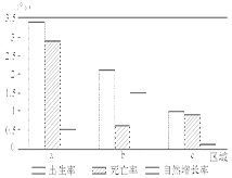 2、单选题 上海市1993年以来出生率在6‰以下,死亡率在8‰以下 。 图是1993~2003年来上海市人口总数与自然增长率变化示意图,据此回答下列各题。