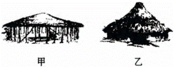 (l)甲、乙两图中,表示半坡遗址房屋雏形的是____,表示河姆渡遗址房屋雏形的是____,根据是____________________。(6分)