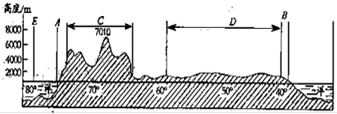 1、单选题 读“沿16°纬线某大洲的地形剖面图”,完成下列问题。