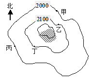 3、单选题 下图示意某山地顶峰周边的情况,阴影部分为终年积雪,甲、丁两地气温相同。据此回答下列问题。