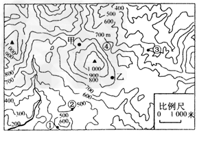 2、单选题  一组同学去我国东南沿海某地考察,行走过程中他们看到如下特征:,中一个山峰目测距离约2km(只考虑图示范围内的地形)”,据此回答1~2题。