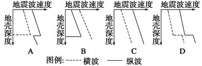 小题1:地震波在地球内部传播时,科学家们发现在距离地面大约2 900千米深度处横波速度突然降低为零,纵波速度也突然降低,这说明了( )
