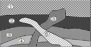 5、单选题 下图中①、②、③、④为沉积岩,⑤、⑥为岩浆岩,读下图完成下列各题。