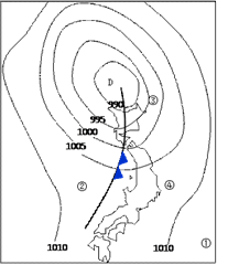 小题1:由图形知北海道位于冷锋控制下,处于冷锋过境位置,2月份易形成大雪纷飞天气。选项A正确。