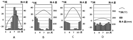 (2)下图中的气候资料,与开普敦相符的是_____,与荷兰气候类型相同的是_______。