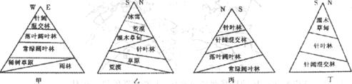 1、单选题 甲、乙、丙、丁四幅山地垂直自然带分布图,甲地位于南半球,其余均位于我国。读图回答1~2题