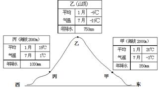 4、单选题 下图为“某山地甲、乙、丙三地气温、降水量资料图”。读图回答下列各题。