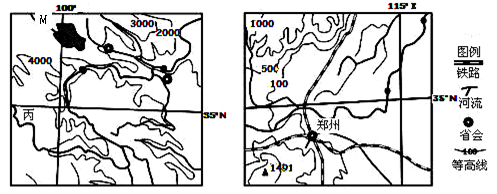 (1)读左上图,写出丙地所在的大地形区的名称,并运用所学地理知识,简述其对我国夏季降水的影响 (5分) 。?