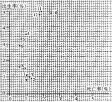 3、单选题  读不同国家人口出生率、死亡率统计图,图中1~12代表国家。回答下列各题。