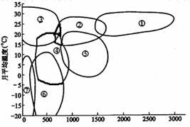 2、单选题 图8表示气温,降水与气候类型的关系。读图9回答25-26题。