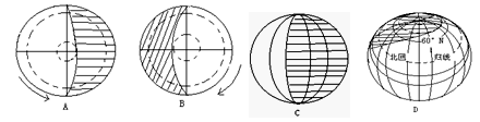 (3)图中A、B、C、D四位置代表的节气名称分别是: