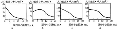 2、单选题 图是“某城市不同时期人口密度与距市中心距离关系图”,读图回答23-25题。