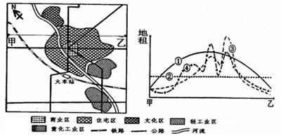小题2:右图中曲线能反映左图中甲乙一线地租变化的是: