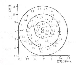 1、单选题  下图反映了某区域以G地为中心,半径约15千米范围内,近10年平均气温增幅的分布状况,读图完成下列问题