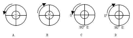 5、单选题 下面四幅极地俯视图中,能正确表示地球自转方向的是: ?(?)