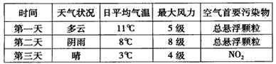 5、单选题 读我国北方某城市天气与空气质量情况表,回答1—2题。