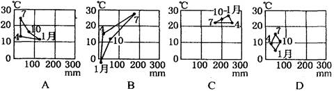 5、单选题 下面四幅图分别代表一种气候类型,其中代表温带季风气候的是(?)