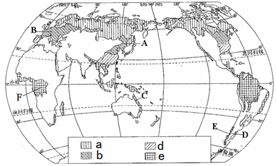 5、综合题 读图“世界森林植被分布示意图”,回答下列问题。(10分)