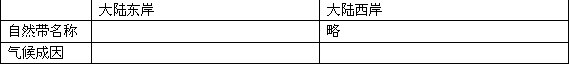 (3)图中d类植被分布在大陆东西两岸,说明对应的自然带名称,并分析其气候成因