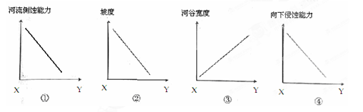 1.图中甲地的地貌类型是2.下列四幅图不能反映该河XY河段特征的是