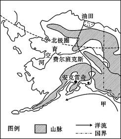 5、单选题 下图为美国阿拉斯加地区简图。图中南北方向连接油田的线是阿拉斯加输油管道,这是世界上第一条深入北极圈的输油管道。有近一半的输油管道架空修建并采用泡沫塑料保温,有比较完善的抗地震措施,在平坦地带也采用“之”字形铺设。读图回答下列问题。