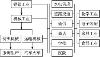 (1)图中左列的工业部门之间存在着__________的联系,右列中的工业部门之间是__________的联系。