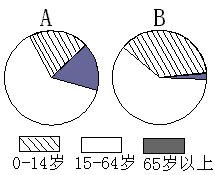 4、综合题 图中A、B表示两类不同经济发展水平国家的人口年龄构成,读图回答问题。