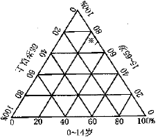 本题解析:根据图可知,0-14岁人口比例比20%多一些