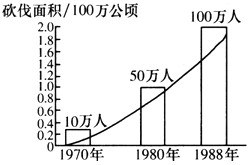 B、1970年至1988年毁林面积从1万公顷增加到12万公顷