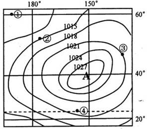 4、单选题 读某地区海平面平均气压分布图,读图回答下列问题。