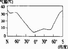 1、综合题 读各纬度平均温度年较差示意图,分析回答:
