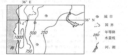 4、单选题 读某区域年等降水量线图(单位mm),完成下列问题。
