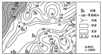 4、综合题 读我国南方某地区的地形、地质略图,结合所学知识完成(1)~(4)题。