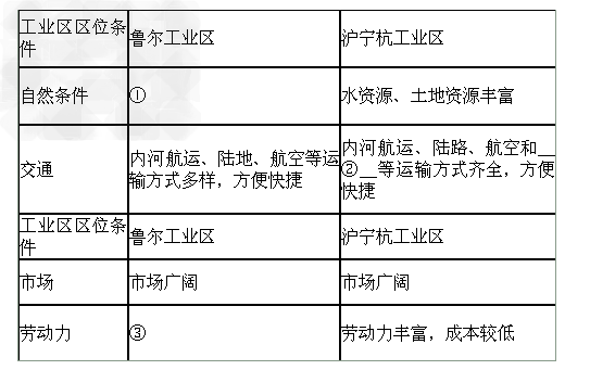 1、综合题 (1 )对比分析两工业区形成和发展的区位优势,完成下表内容。