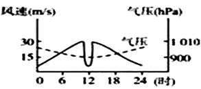4、单选题 如图所示,是某地区气象观测站观测到的某一天气系统24小时之内的气压、风速的变化曲线图,判断该天气系统是