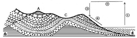 (3)说出该区域的褶皱形态及判断依据。(2分)
