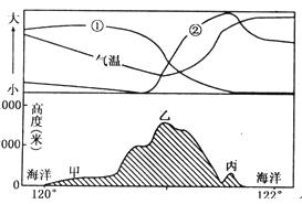 【小题2】由图可知台湾岛中部地势高,沿海地区地势低,西部平原分布较多;该岛地处中国东南沿海,季风气候显著,夏季来自太平洋的东南季风带来丰沛的水汽,岛屿东侧是山地迎风坡降水多,岛屿西侧是背风坡降水少,与②曲线相符;岛屿西侧降水少,晴天多,光照充足,岛屿东侧降水多,晴天少,光照相对较少,与①曲线相符,故选项B正确。