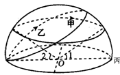 2、单选题 该图为北半球甲乙两地某日“太阳视运动路线图”,圆O为地平圈,箭头为太阳视运动方向,<1=<2=22?。回答问题。