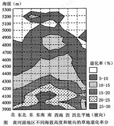 2、单选题  读我国某地区不同海拔高度和坡向的草地退化率分布图,回答9~10题。?