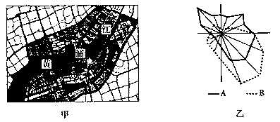 (3)图乙中A、B是上海市全年与世博会举办期间的风向玫瑰图,其中?(填字母)表示世博会举办期间的风频分布.(共1分)
